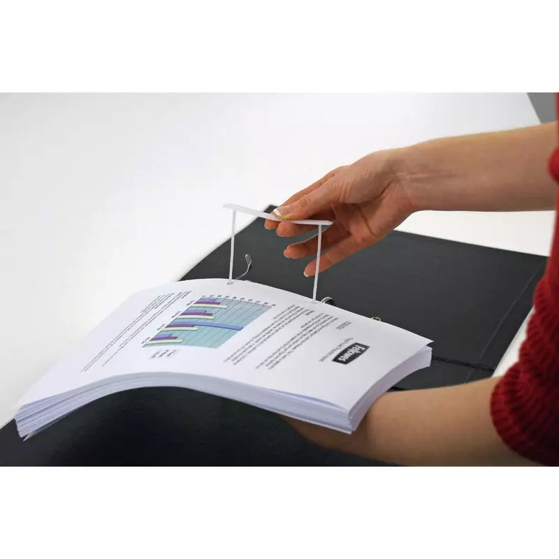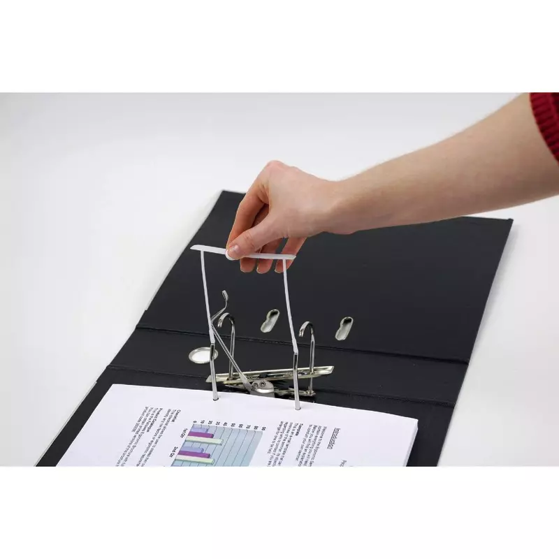 Zweiteiliger Kunststoffclip zur einfachen und schnellen Entnahme von kompletten Ordnerinhalten.