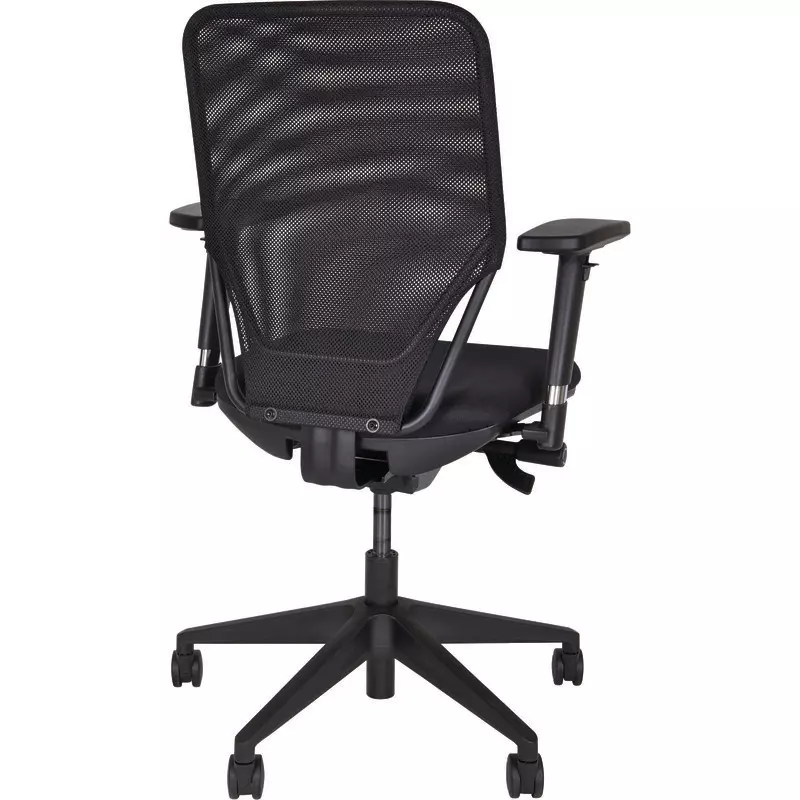 Der Bisley Drehstuhl Optime mit fixer Rückenlehne ist mit einem atmungsaktiven, transparenten Netzbezug ausgestattet. Der Sitz ist sowohl tiefen- als auch höhenverstellbar.