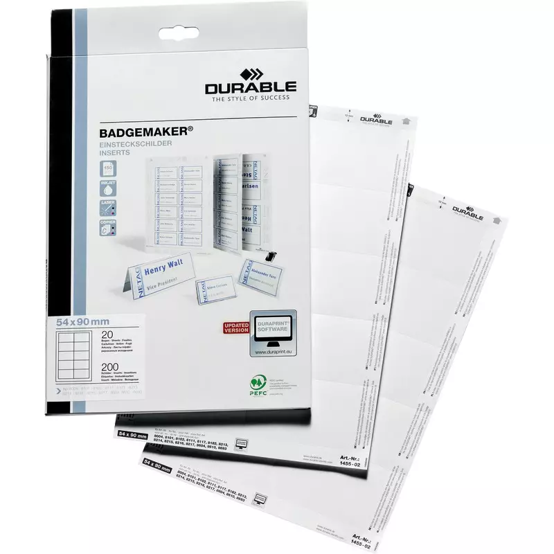 Produktinformationen "DURABLE Einsteckschild BADGEMAKER®, weiß, 90 x 54 mm, 200 Schilder"