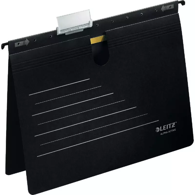 Umweltfreundliche Alpha® Active Hängehefter für gelochte Dokumente in der bewährten LEITZ®-Qualität. Push-Down Reiter und einschiebbare Hängehaken und für einen einfachen mobilen Einsatz.